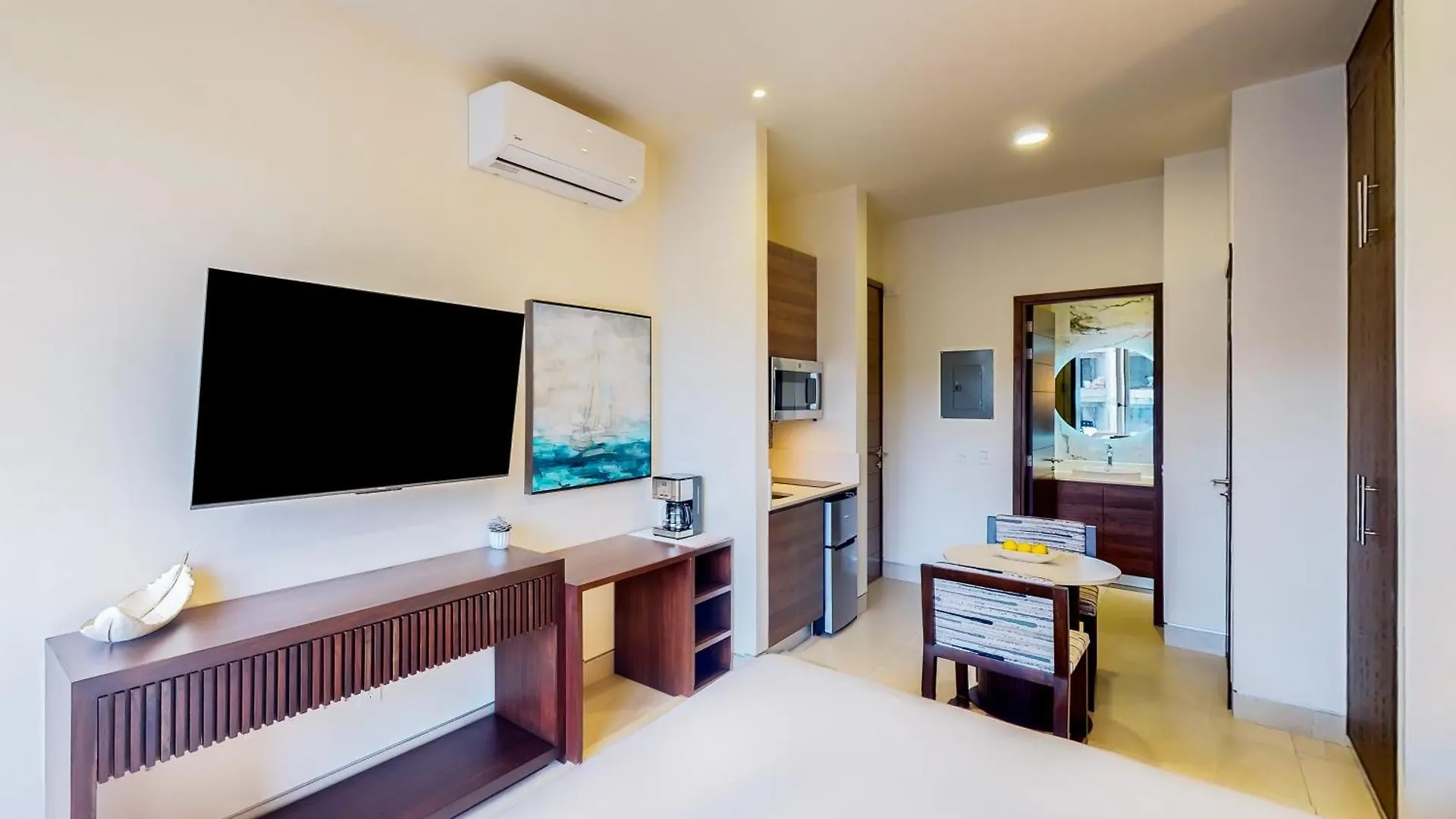 Le camere dispongono di servizi per la preparazione di tè/caffè, nonché di una TV a schermo piatto con canali satellitari per la comodità degli ospiti. Inoltre sono fornite di un frigo e utensili da cucina.